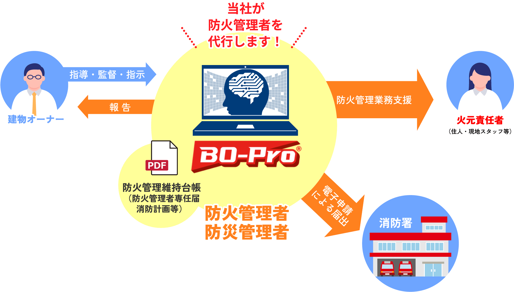 ㈱防災屋では防火管理システム「BO-ProⓇ」を導入することによる、防火管理業務のDXによる高効率化を実現しています。