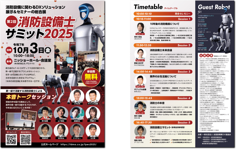 2025年10月3日(金)に東京で「第2回 消防設備士サミット」が開催されました。前年に名古屋で開催された第1回の総動員数は500名程でしたが、第2回は総来場者数1,309名と大盛況の大成功でした。改めて消防設備士という国家資格や仕事に注目が集まっていると確信できるイベントとなりました。